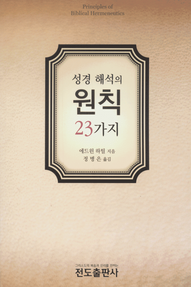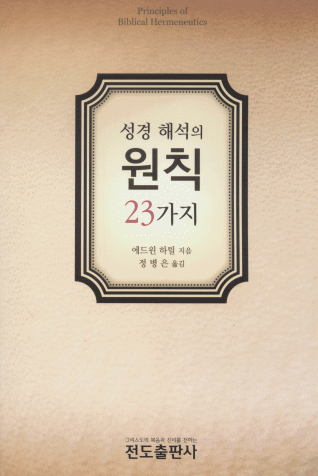 1. 성경과 성경을 연구하는 사람 2. 경륜상의 원칙 3. 언약상의 원칙 4. 인종상의 원칙 5. 말씀분별의 원칙 6. 예언상의 원칙 7. 적용상의 원칙 8. 상징상의 원칙 9. 자원자각(自願自覺)의 원칙 10. 최초 언급의 원칙 11. 점진적 계시의 원칙 12. 집약적인 계시의 원칙 13. 문맥상의 원칙 14. 조화일치의 원칙 15. 직설화법의 원칙 16. 시간상 공백의 원칙 17. 삼중구원의 원칙 18. 주권적인 선택의 원칙 19. 반복의 원칙 20. 체계적인 구조의 원칙 21. 대표적인 실례의 원칙 22. 이중적용의 원칙 23. 그리스도 중심의 원칙 24. 수리상의 원칙 25. 상징상의 원칙(부록) |
